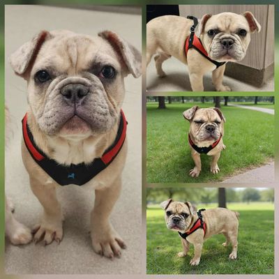 What to say about Waffles? If you know anything about frenchies, then you know how entertaining they are. Waffles lives up to his breed. He has been playing with Esmeree the lab (also available for adoption). He is not a fan of being held but that seems to be because he would rather run and play. He does sTay in a very large kennel when foster mom is away and he is about 95% housetrained.